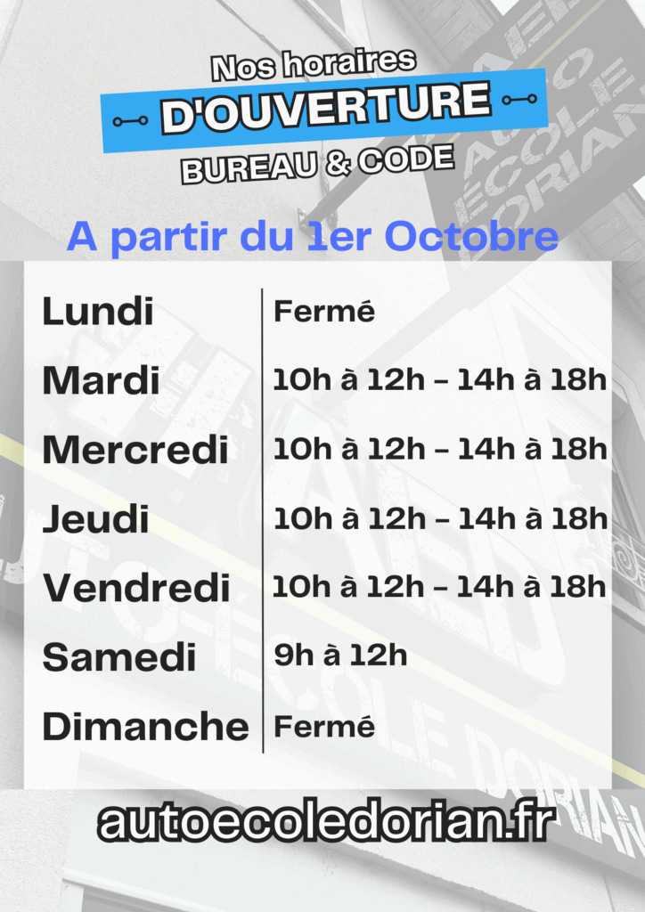 Horaires d’ouverture du Bureau et de la Salle de code.